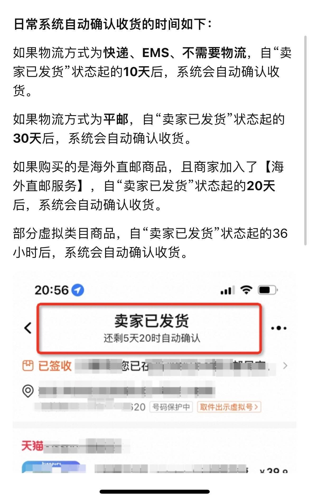 浙江溫州的林先生告訴記者,去年11月他在淘寶海淘羽絨服,賣家稱已經(jīng)發(fā)貨后他一直沒有在意物流信息,直到發(fā)現(xiàn)商品已經(jīng)自動收貨,他才意識到,賣家利用了淘寶默認(rèn)快遞發(fā)貨后10天、海外直郵商品發(fā)貨后20天,系統(tǒng)自動確認(rèn)收貨的規(guī)則漏洞。