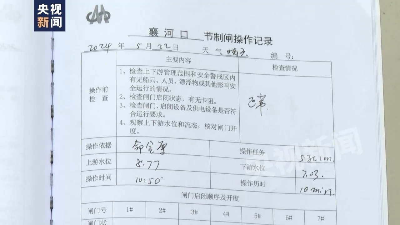 記者在安徽省駟馬山引江工程襄河口閘管理所的節(jié)制閘操作記錄本上看見,發(fā)現(xiàn)在5月18日上午,這里的節(jié)制閘原本已處于完全關閉狀態(tài)。然而在發(fā)現(xiàn)水體污染的兩天后,5月22日上午10點50分,襄河口七孔節(jié)制閘中的五孔開閘,在閘前聚集兩天的污水一路暢通地進入滁河。這一次放水直至5月23日15點50分結束,時間長達29個小時。