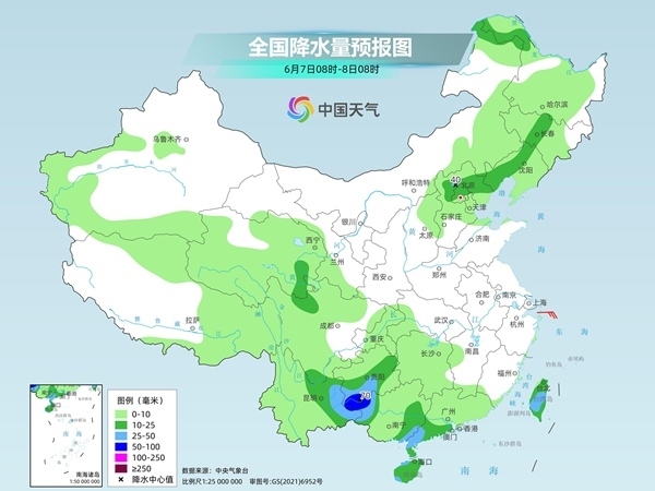 昨天,受高空槽東移影響,華北、東北一帶多陣雨或雷陣雨天氣;南方依然降雨頻繁,較強(qiáng)降雨主要出現(xiàn)在華南等地部分地區(qū)。監(jiān)測顯示,廣東中西部、廣西東部和南部、云南中南部、福建北部、浙江南部以及海南島北部等地部分地區(qū)出現(xiàn)大到暴雨,廣西貴港、廣東湛江、云南普洱局地大暴雨;內(nèi)蒙古東南部、北京東部、天津中部、黑龍江東南部、青海東北部、甘肅中部等地部分地區(qū)出現(xiàn)中到大雨,內(nèi)蒙古興安盟、黑龍江哈爾濱局地暴雨。