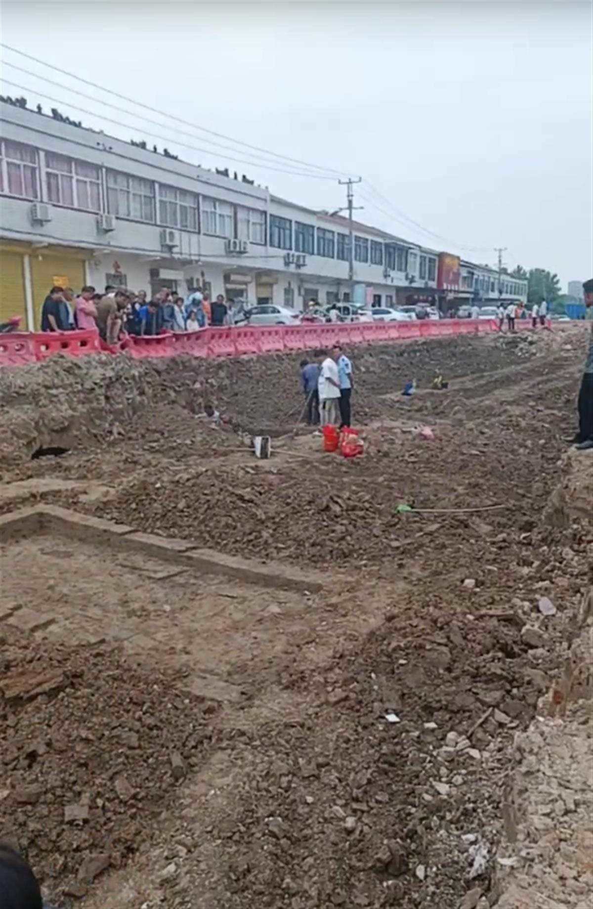 網(wǎng)友發(fā)布的視頻顯示,在壽縣炎劉鎮(zhèn)廣巖衛(wèi)生院附近的一處修路的工地上,施工人員在作業(yè)過程中發(fā)現(xiàn)了一個古墓群,目前確定有6座古墓。目前,當?shù)乜脊殴ぷ髡咭呀?jīng)趕到現(xiàn)場處置,民警對現(xiàn)場進行了管制。視頻中,現(xiàn)場被警戒線圍起,多名群眾在附近圍觀。