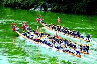 每年農(nóng)歷五月,在貴州省黔東南苗族侗族自治州的清水江流域,當(dāng)?shù)氐拿缱迦罕姸紩?huì)舉辦苗族獨(dú)木龍舟節(jié)。龍舟節(jié)以水上龍舟競(jìng)渡為載體,融合了苗族服飾文化、歌舞文化、飲食文化等,數(shù)百年經(jīng)久不衰,沿襲至今。2008年,苗族獨(dú)木龍舟節(jié)便被列入第二批國家級(jí)非物質(zhì)文化遺產(chǎn)代表性項(xiàng)目名錄。