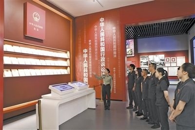 近日,江西省瑞金市人民法院分批次組織黨員干部前往中華蘇維埃共和國法制建設(shè)紀(jì)念館參觀學(xué)習(xí),共同回顧紅色法治發(fā)展軌跡,賡續(xù)紅色法治血脈。紀(jì)念館中復(fù)原的“七里坪革命法庭”“馬錫五下鄉(xiāng)斷案”場景逼真且震撼,黨員干部不時駐足觀看,互相交流討論。圖為法院黨員干部聆聽講解。