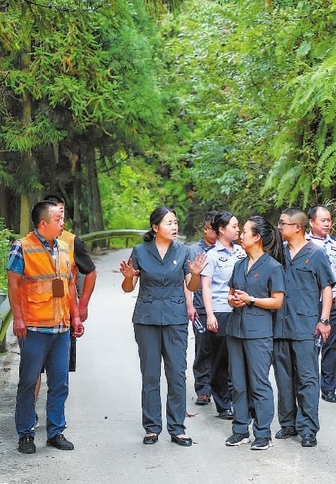 近日,重慶市黔江區(qū)人民法院干警前往黔江區(qū)馬喇國(guó)有林場(chǎng)管護(hù)站、護(hù)林點(diǎn),對(duì)森林防火卡口和護(hù)林站點(diǎn)人員值守、消防預(yù)警機(jī)制等開(kāi)展走訪調(diào)查,深入林區(qū)為農(nóng)戶宣講森林防火、森林生態(tài)環(huán)境保護(hù)等法律知識(shí),營(yíng)造全民共護(hù)森林的良好氛圍,筑牢武陵山區(qū)生態(tài)屏障。圖為干警在林區(qū)走訪調(diào)查。(本報(bào)記者 劉洋 本報(bào)通訊員 楊非 攝)