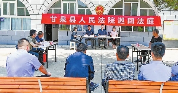 近日,陜西省甘泉縣人民法院道鎮(zhèn)人民法庭在審理一起侵害集體經(jīng)濟(jì)組織成員權(quán)益糾紛案件時(shí),考慮到本案為該區(qū)域多發(fā)常見(jiàn)類(lèi)糾紛,遂將巡回審判庭搬進(jìn)道鎮(zhèn)五里橋村,在窯洞前就地審理。庭審中,法官充分聽(tīng)取雙方當(dāng)事人意見(jiàn),就爭(zhēng)議焦點(diǎn)進(jìn)行釋法明理。經(jīng)過(guò)一個(gè)多小時(shí)的調(diào)解,雖因雙方訴求差距過(guò)大未最終達(dá)成調(diào)解協(xié)議,但極大緩和了雙方矛盾。下一步,法官將繼續(xù)就雙方當(dāng)事人的訴求研判方案,組織調(diào)解。庭審結(jié)束后,法官向群眾介紹了本案相關(guān)的法律規(guī)定,就大家關(guān)心的法律問(wèn)題進(jìn)行答疑解惑。圖為巡回審判現(xiàn)場(chǎng)。(本報(bào)記者 劉輝 本報(bào)通訊員 李樂(lè) 攝)