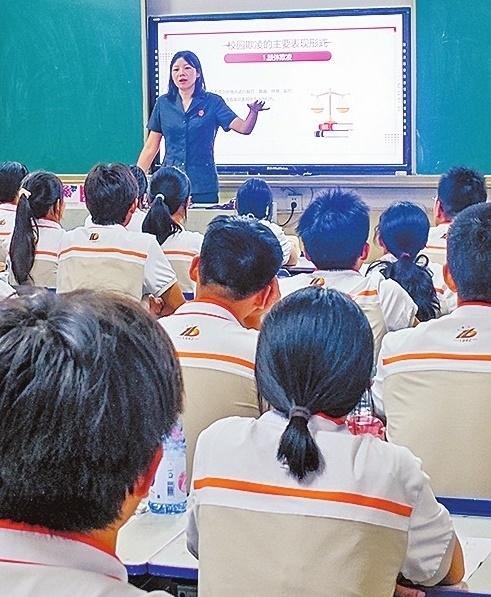 近日,湖北省??悼h人民法院蒲公英法治宣講隊(duì)成員張曉麗走進(jìn)??悼h第一中學(xué),結(jié)合高一新生年齡特點(diǎn),詳細(xì)講解了預(yù)防未成年人犯罪法等法律知識(shí),深入剖析校園暴力、猥褻性侵、網(wǎng)絡(luò)詐騙等危害,強(qiáng)調(diào)學(xué)法、守法、知法、懂法的重要性,引導(dǎo)學(xué)生們樹(shù)立正確的法治觀念。圖為張曉麗向同學(xué)們講解法律知識(shí)。(本報(bào)記者 丁俐 本報(bào)通訊員 王韻婕 攝)