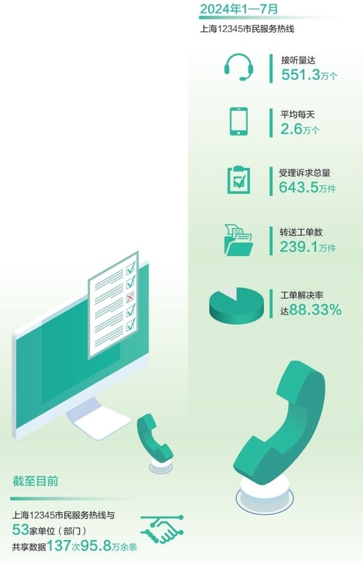 在上海,大多數(shù)市民都知道“有困難找‘12345’”——今年1—7月,上海12345市民服務熱線接聽量達551.3萬個,平均每天2.6萬個。