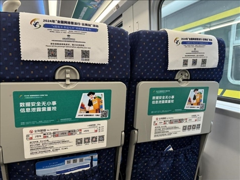 據(jù)介紹,專列的8個主題車廂分別以“中國網(wǎng)絡(luò)法治三十年”“網(wǎng)絡(luò)安全”“數(shù)據(jù)安全”“未成年人網(wǎng)絡(luò)保護(hù)”“數(shù)據(jù)出境之旅”“反網(wǎng)暴凈網(wǎng)行動”“個人信息守護(hù)”以及“網(wǎng)絡(luò)空間命運(yùn)共同體”命名,通過鏡框海報、玻璃貼、小桌板貼、行李架彩貼、頭枕片、車內(nèi)LED信息屏等形式多樣的載體,全面展示網(wǎng)絡(luò)法治30年成就、網(wǎng)絡(luò)空間命運(yùn)共同體主張。讓乘客們在享受舒適旅途的同時,也能輕松學(xué)習(xí)到實(shí)用的法律信息。
