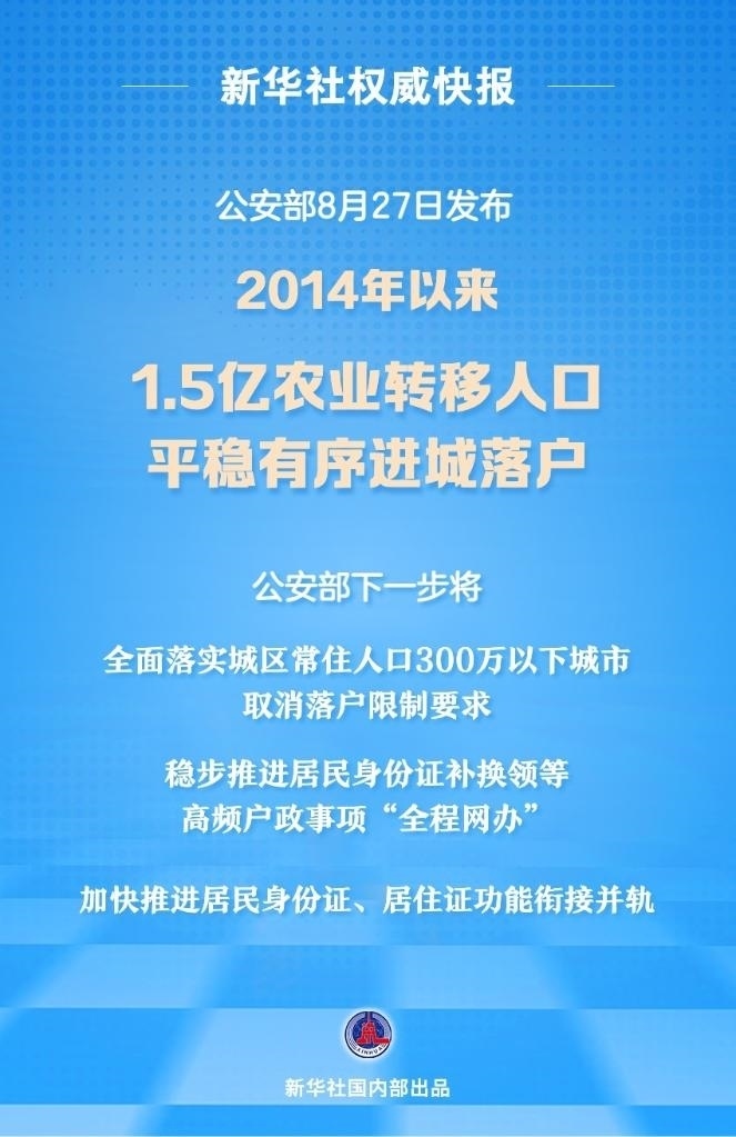2014年以來共有1.5億農(nóng)業(yè)轉(zhuǎn)移人口平穩(wěn)有序進城落戶