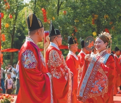 德化人心安徽省蕪湖市南陵縣家發(fā)鎮(zhèn)聯(lián)三村舉行集體婚禮,倡導婚事新辦、儉辦的文明新風尚。肖本祥攝(人民視覺)