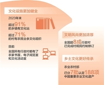 新時代以來,各地區(qū)各部門深入推進農(nóng)村精神文明建設(shè)。加快完善鄉(xiāng)村文化設(shè)施,健全農(nóng)村公共文化體系,農(nóng)家書屋、鄉(xiāng)村文化禮堂等打通文化惠民“最后一公里”;發(fā)展群眾性文體活動,廣泛開展“村BA”“村超”“村晚”等,豐富鄉(xiāng)村精神文化生活,展現(xiàn)鄉(xiāng)親們積極向上的精氣神;培育挖掘鄉(xiāng)土文化人才,引導文化工作者、科普工作者、文化志愿者等投身鄉(xiāng)村文化建設(shè);賡續(xù)鄉(xiāng)村優(yōu)秀傳統(tǒng)文化,把對非遺的保護傳承和開發(fā)利用有機結(jié)合,將藝術(shù)與古村落、古民居的活化利用有機結(jié)合;持續(xù)推進農(nóng)村移風易俗,革除高價彩禮、人情攀比、厚葬薄養(yǎng)、鋪張浪費等陳規(guī)陋習,反對迷信活動,推動形成文明鄉(xiāng)風、良好家風、淳樸民風;健全鄉(xiāng)村治理體系,有效發(fā)揮村規(guī)民約作用,推廣文明積分等方式,激勵農(nóng)民自覺踐行文明新風……這些舉措為加強農(nóng)村精神文明建設(shè)提供了有力抓手,推動現(xiàn)代文明理念融入鄉(xiāng)村生活方方面面,為推進鄉(xiāng)村全面振興注入新動能。