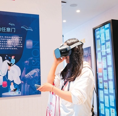 近日,云南省第四屆全民閱讀大會(huì)在昭通市昭通古城舉行?;顒?dòng)包括惠民書展、非遺體驗(yàn)、文創(chuàng)展銷等活動(dòng),營(yíng)造愛讀書、讀好書、善讀書的書香氛圍。圖為市民在云南省昭通市一家書店體驗(yàn)VR閱讀。