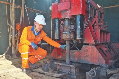 “一開始,看著其他同學(xué)生活多姿多彩,我內(nèi)心曾有些許波動(dòng)。但當(dāng)看到前輩們說(shuō)起找到礦時(shí)神采奕奕的樣子,我心里就有了底氣,也明白了堅(jiān)守的意義?!笔┕み^(guò)程中,李寬和同事潛心研究、認(rèn)真分析,解決了鉆孔縮徑、掉塊、漏失等多個(gè)技術(shù)難題。