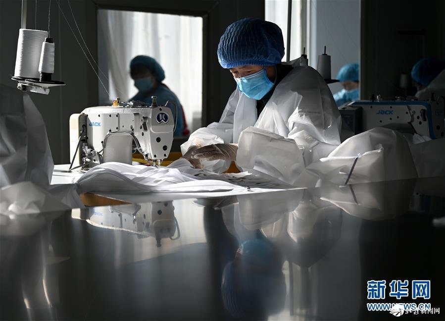 呼和浩特欣龍康醫(yī)療器械有限責(zé)任公司是一家員工不足20人的小型企業(yè),也是內(nèi)蒙古為數(shù)不多能生產(chǎn)醫(yī)用防護(hù)服的企業(yè)之一。新冠肺炎疫情發(fā)生后,公司從1月24日(除夕)就組織員工復(fù)產(chǎn),24小時(shí)連續(xù)作業(yè),生產(chǎn)無(wú)菌醫(yī)用防護(hù)服和隔離服。目前,該企業(yè)每天生產(chǎn)防護(hù)服約400套,全部用于內(nèi)蒙古防治新冠肺炎的一線醫(yī)護(hù)人員。 新華社記者 徐欽 攝