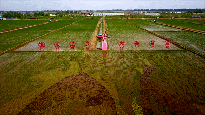 △稻田畫讓稻漁空間變身“網(wǎng)紅景點(diǎn)”。(總臺(tái)央視記者康曉宇、李浩男拍攝)