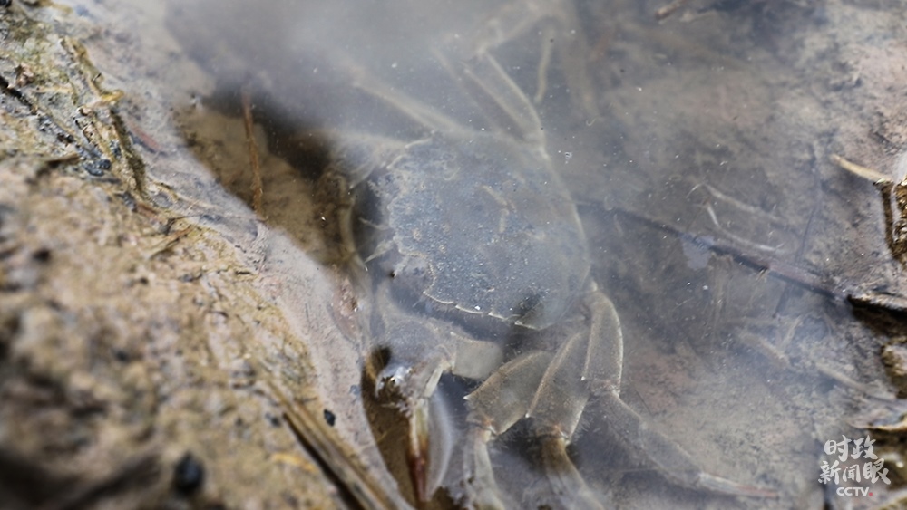 △魚蝦蟹在稻田里游動(dòng),既松動(dòng)泥土幫助水稻生長(zhǎng),又能提供肥料。(總臺(tái)央視記者范凱拍攝)