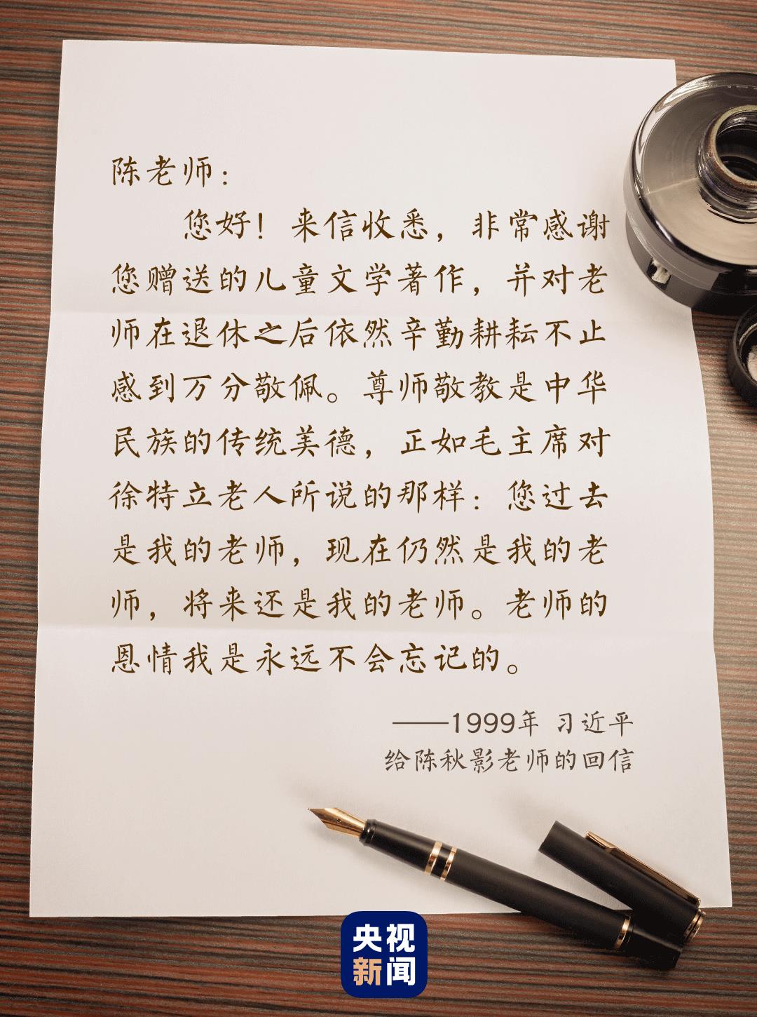 尺素寸心,情意拳拳。陳秋影說,在她看來,習近平在回信中使用的“尊師敬教”這個詞,一個“敬”字道出了學生對老師的情誼。