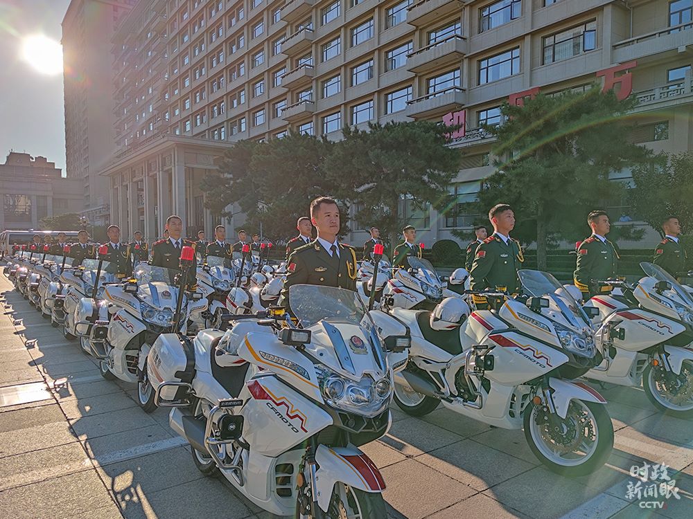 △表彰大會(huì)前,國(guó)賓護(hù)衛(wèi)隊(duì)準(zhǔn)備從住地出發(fā)。(總臺(tái)央視記者胡瑋拍攝)