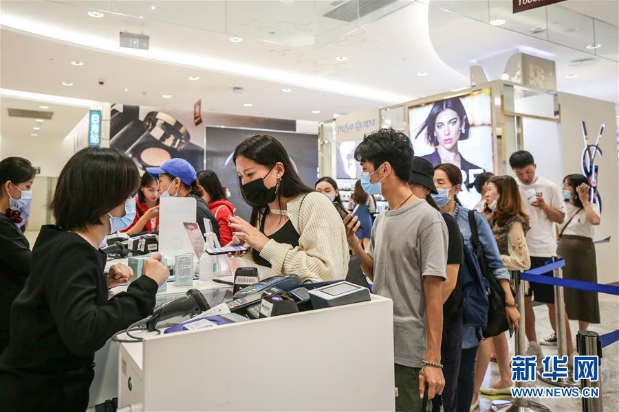 10月27日,消費(fèi)者在海南省??谑腥赵聫V場(chǎng)免稅店選購(gòu)商品。新華社記者張麗蕓攝