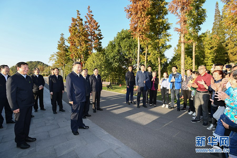 11月12日至13日,中共中央總書記、國家主席、中央軍委主席習(xí)近平在江蘇考察。這是13日下午,習(xí)近平在揚州市運河三灣生態(tài)文化公園考察時,同市民群眾親切交流。新華社記者謝環(huán)馳攝