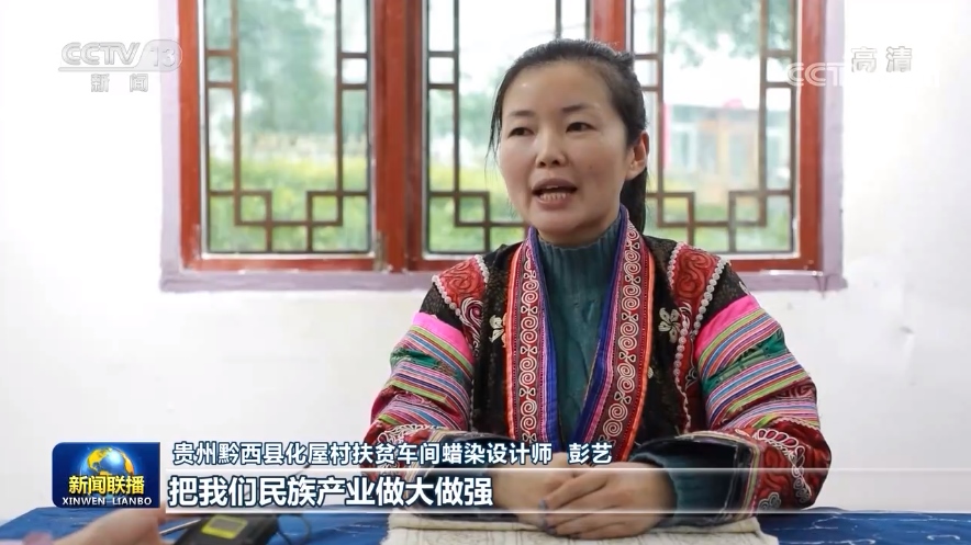 貴州黔西縣化屋村扶貧車(chē)間蠟染設(shè)計(jì)師彭藝:把我們民族產(chǎn)業(yè)做大做強(qiáng),讓我們苗族同胞的生活,過(guò)得像我們蠟染刺繡一樣精彩。