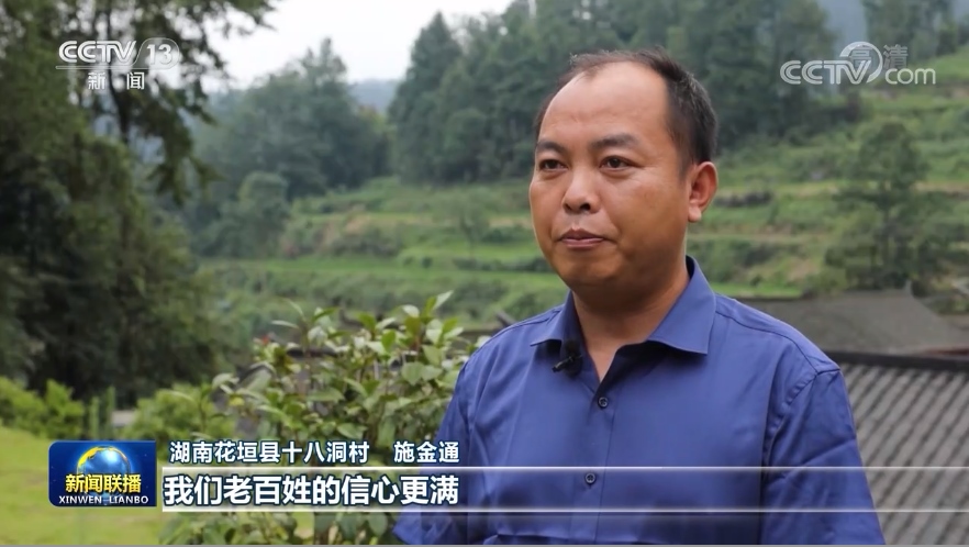 湖南花垣縣十八洞村施金通:我們老百姓的信心更滿(mǎn),干勁更足,對(duì)以后發(fā)展的憧憬更有信心?! ?/p>