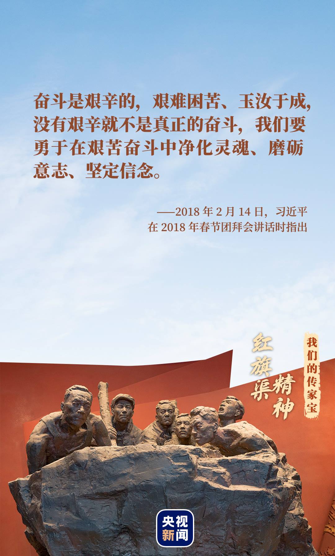 歷久彌新的紅旗渠精神鐫刻在每一塊太行山石上,融入每一滴紅旗渠水中。這面精神旗幟,匯聚起強(qiáng)大的正能量,激勵(lì)著中國人民在追夢路上奮勇前行。