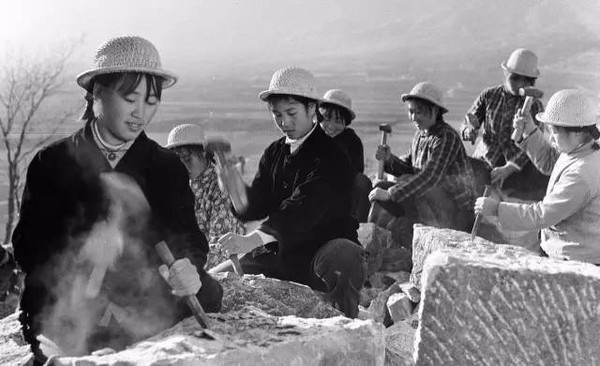 △紅旗渠建設(shè)工地上的女石匠