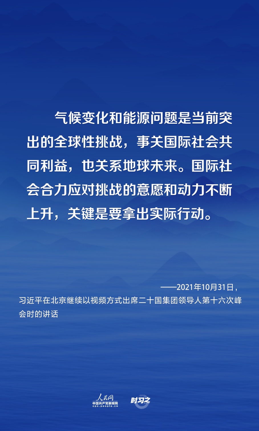 國(guó)家主席習(xí)近平10月31日晚在北京繼續(xù)以視頻方式出席二十國(guó)集團(tuán)領(lǐng)導(dǎo)人第十六次峰會(huì)。今年以來(lái),就如何應(yīng)對(duì)氣候變化和能源問題這一全球性挑戰(zhàn),習(xí)近平多次提出中國(guó)倡議和中國(guó)方案。