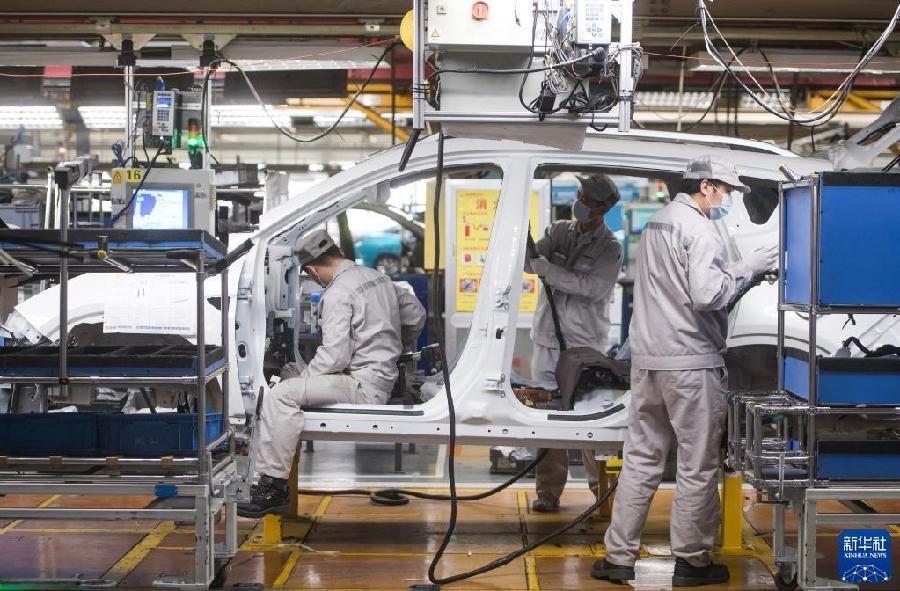 2020年3月24日,工人在湖北武漢東風乘用車公司工廠總裝車間的流水線上作業(yè)。2020年3月下旬左右,武漢各企業(yè)開始陸續(xù)復工復產。新華社記者 肖藝九