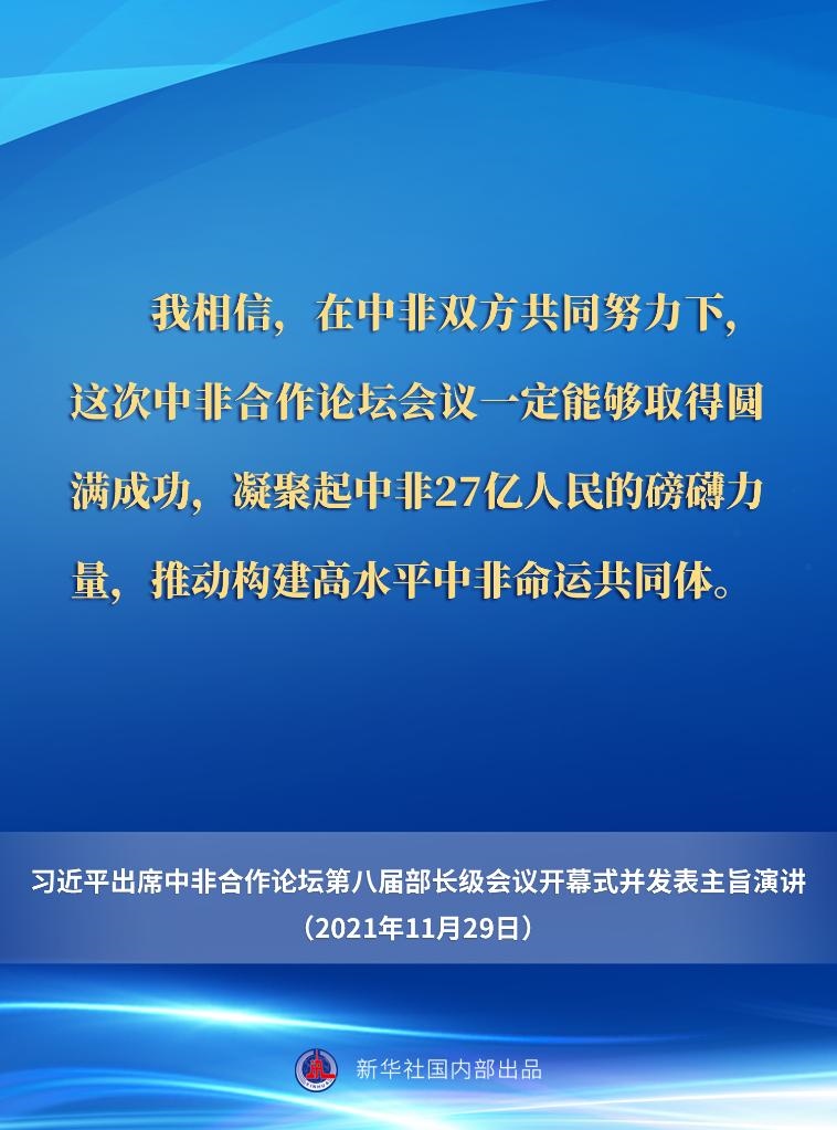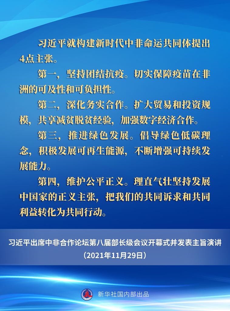 11月29日晚,國家主席習(xí)近平在北京以視頻方式出席中非合作論壇第八屆部長級(jí)會(huì)議開幕式并發(fā)表主旨演講。一起來看要點(diǎn)。