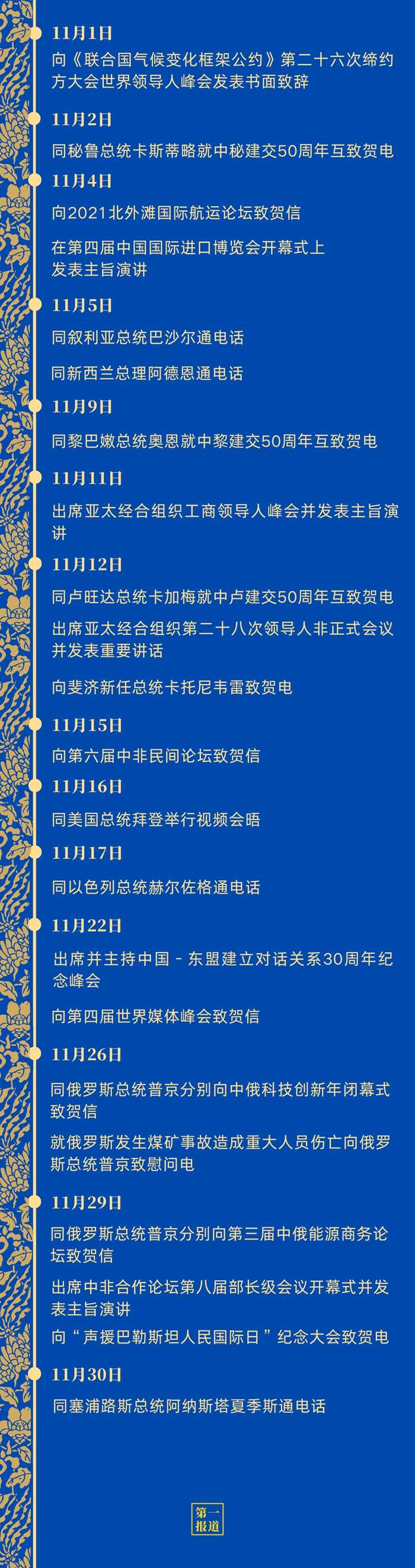 11月,中國元首外交活動豐富、頻密,在雙邊關(guān)系、多邊合作、全球發(fā)展、共建家園四方面彰顯強(qiáng)大推動力——