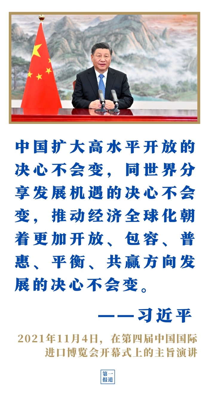 第四屆進(jìn)博會上,習(xí)近平主席表示,中國愿同各國共建開放型世界經(jīng)濟(jì),讓開放的春風(fēng)溫暖世界;第三次“一帶一路”建設(shè)座談會上,習(xí)近平主席強(qiáng)調(diào)以高標(biāo)準(zhǔn)、可持續(xù)、惠民生為目標(biāo),繼續(xù)推動共建“一帶一路”高質(zhì)量發(fā)展。