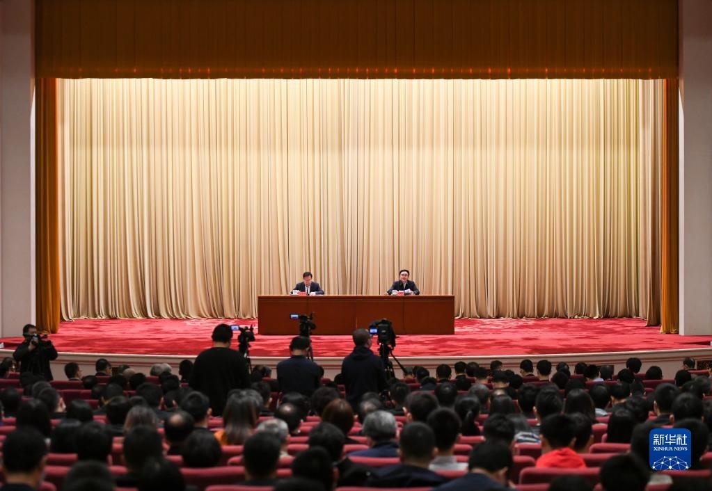 2021年3月16日,黨史學(xué)習(xí)教育中央宣講團首場報告會在北京舉行。這是中央宣講團成員、中央黨史和文獻(xiàn)研究院院長曲青山(右)在報告會上作宣講報告。新華社記者陳曄華攝
