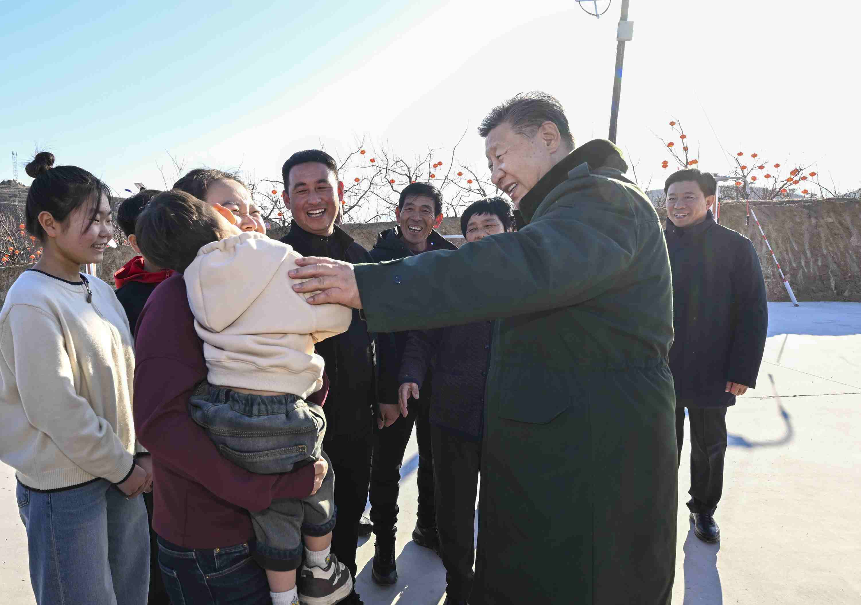 △2022年1月26日,中共中央總書記、國(guó)家主席、中央軍委主席習(xí)近平在臨汾市汾西縣僧念鎮(zhèn)段村同村民蔡文明一家親切交流。