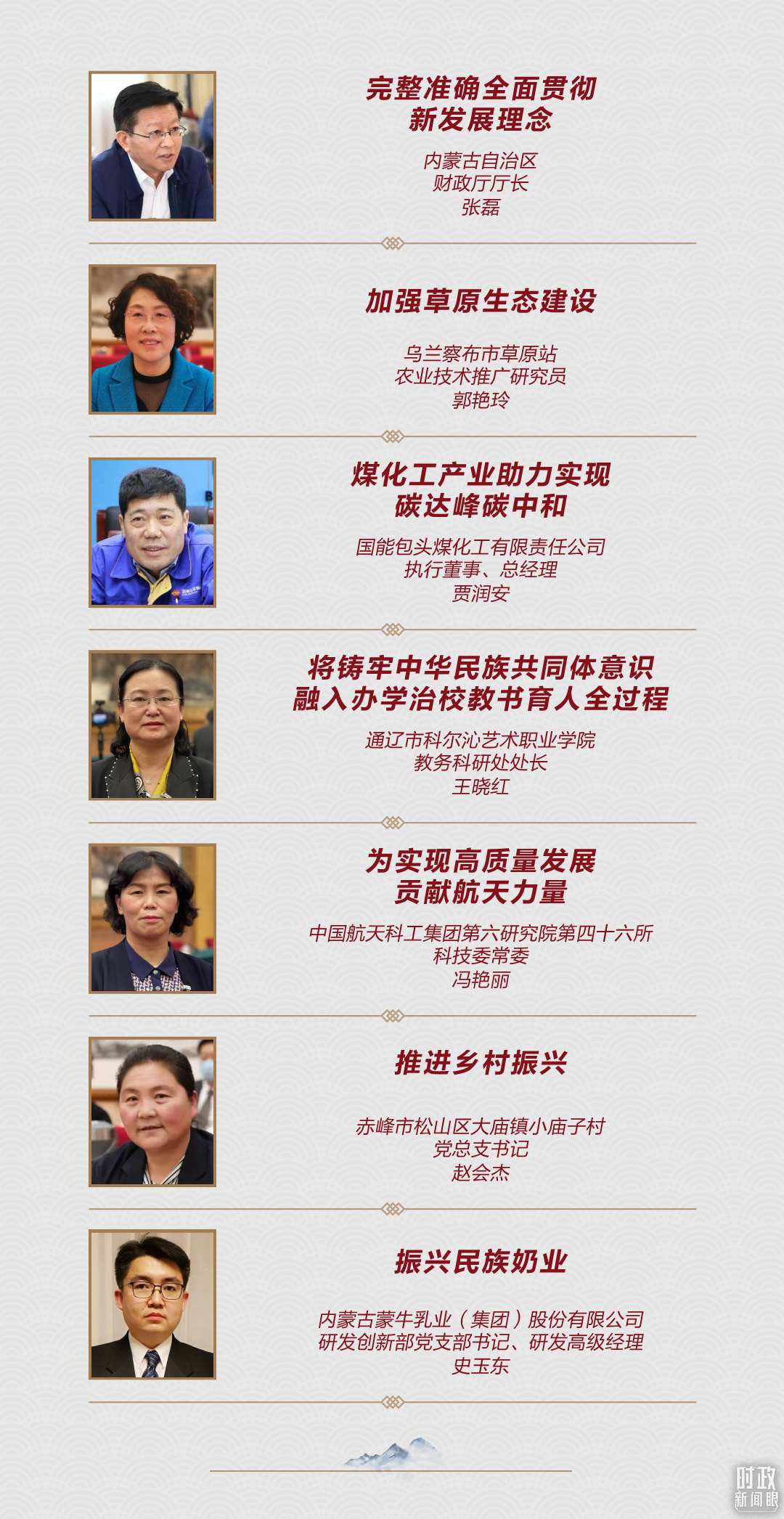 今年首位發(fā)言的代表是內蒙古自治區(qū)財政廳廳長張磊,他圍繞“完整準確全面貫徹新發(fā)展理念”向總書記介紹了近年來內蒙古在發(fā)展理念、路徑、方式、目標等方面的做法和變化。去年,習近平在參加內蒙古代表團審議時,就著重強調要完整準確全面貫徹新發(fā)展理念。