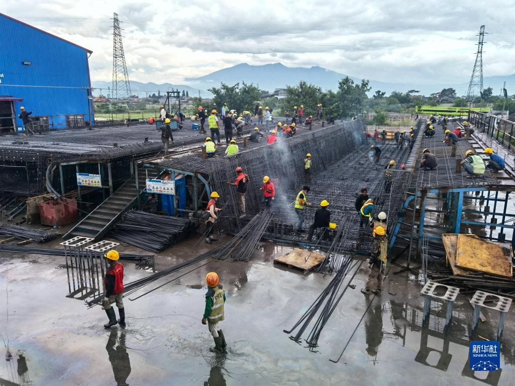 工人在印度尼西亞雅萬(wàn)高鐵4號(hào)梁場(chǎng)作業(yè)(2022年5月1日攝)。新華社發(fā)(王增堃攝)
