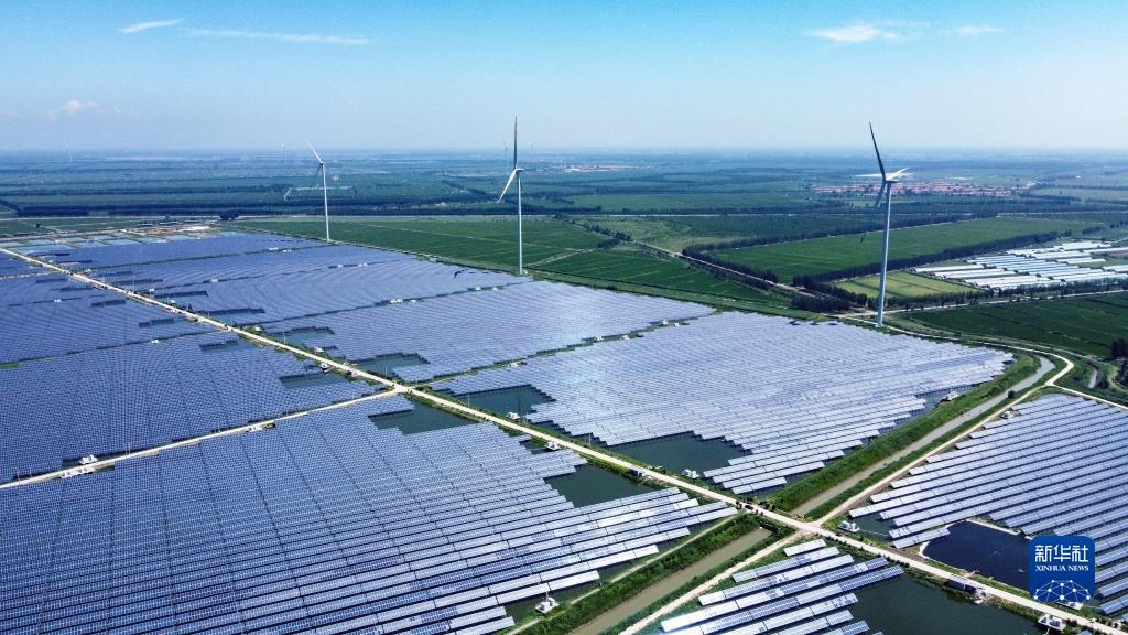 這是在天津市寧河區(qū)寧河鎮(zhèn)大月河村拍攝的110千伏大月河光伏電站(2022年7月18日攝,無(wú)人機(jī)照片)。新華社記者 孫凡越 攝