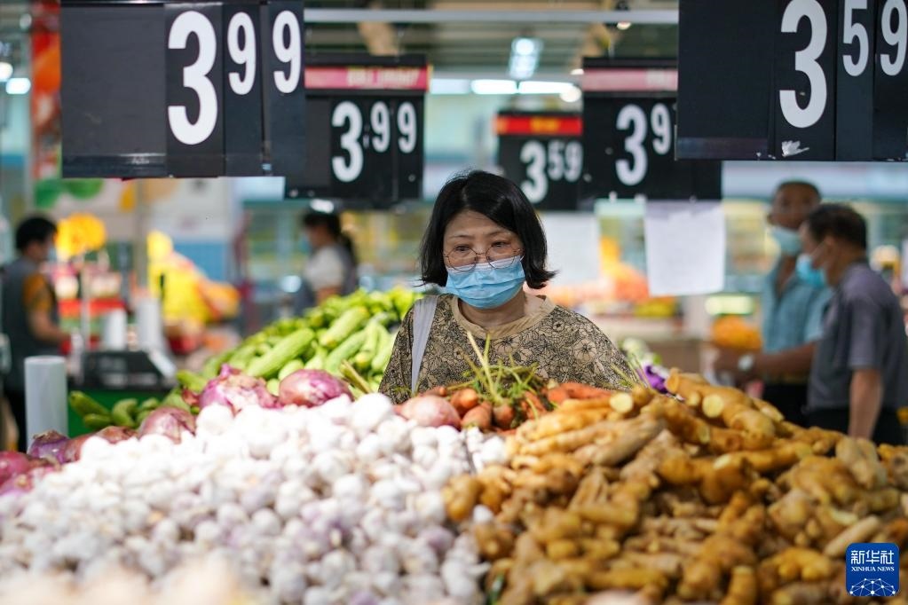 市民在江蘇省無錫市經開區(qū)華潤萬家超市購物(2022年7月7日攝)。江蘇省無錫市在做好疫情防控的同時,積極制定相關方案,制作城市保供地圖,組織大型商超、市場正常運營,全力保供穩(wěn)價,端穩(wěn)市民“菜籃子”。新華社記者李博攝