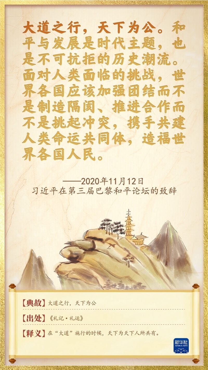 “這個(gè)世界,各國(guó)相互聯(lián)系、相互依存的程度空前加深,人類生活在同一個(gè)地球村里,生活在歷史和現(xiàn)實(shí)交匯的同一個(gè)時(shí)空里,越來(lái)越成為你中有我、我中有你的命運(yùn)共同體?!?013年3月23日,習(xí)近平擔(dān)任中國(guó)國(guó)家主席后首訪俄羅斯,提出了人類命運(yùn)共同體的重要理念。十年間,習(xí)近平總書(shū)記在不同場(chǎng)合反復(fù)強(qiáng)調(diào)“天下一家”、命運(yùn)與共,主張各國(guó)和衷共濟(jì),攜手創(chuàng)造世界的美好未來(lái)。我們梳理了總書(shū)記關(guān)于命運(yùn)與共的用典,一起來(lái)學(xué)習(xí)。