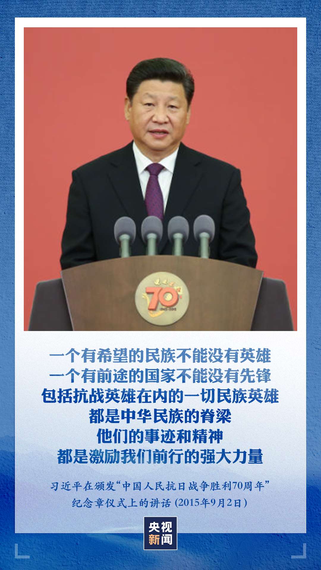 “一個(gè)有希望的民族不能沒(méi)有英雄,一個(gè)有前途的國(guó)家不能沒(méi)有先鋒。”習(xí)近平總書(shū)記強(qiáng)調(diào),包括抗戰(zhàn)英雄在內(nèi)的一切民族英雄,都是中華民族的脊梁,他們的事跡和精神都是激勵(lì)我們前行的強(qiáng)大力量。