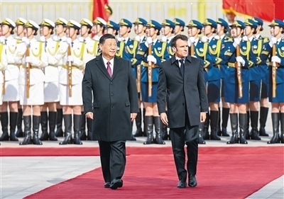 習(xí)近平歡迎馬克龍再次訪華。習(xí)近平指出,當(dāng)今世界正在經(jīng)歷深刻的歷史之變,中法作為聯(lián)合國安理會常任理事國和具有獨(dú)立自主傳統(tǒng)的大國,作為世界多極化、國際關(guān)系民主化的堅定推動者,有能力、有責(zé)任超越分歧和束縛,堅持穩(wěn)定、互惠、開拓、向上的中法全面戰(zhàn)略伙伴關(guān)系大方向,踐行真正的多邊主義,維護(hù)世界和平、穩(wěn)定、繁榮。