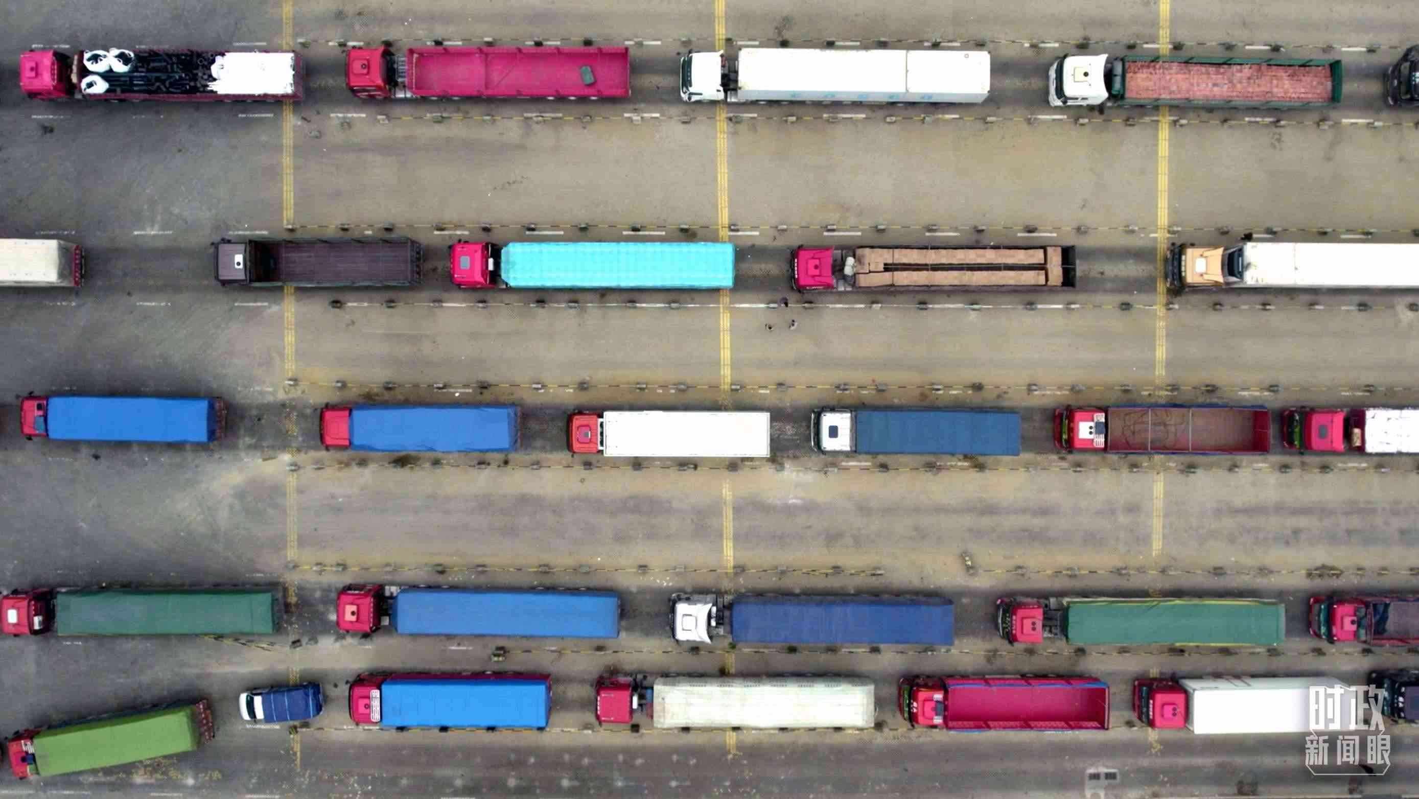 △徐聞港內(nèi)運(yùn)送貨物的車隊(duì)。(總臺央視記者范凱拍攝)