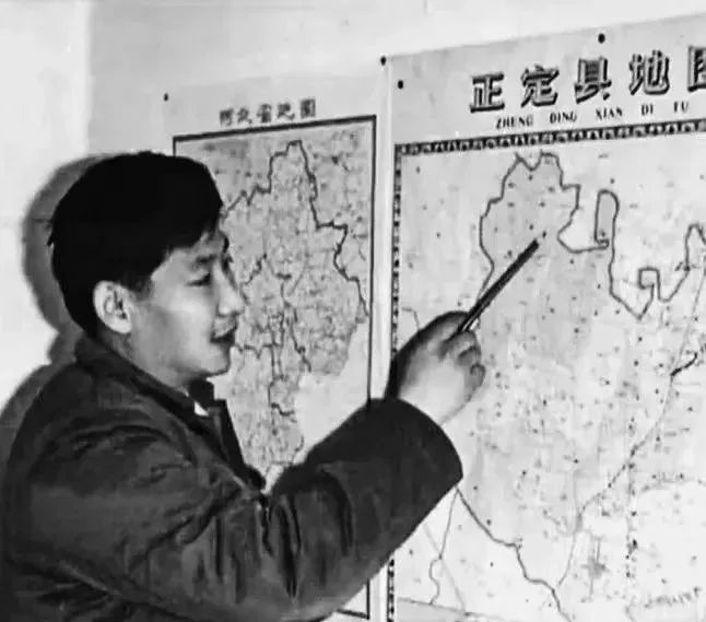 習近平在辦公室地圖前謀劃正定的發(fā)展。(圖源:《讓群眾過上好日子——習近平正定足跡》)