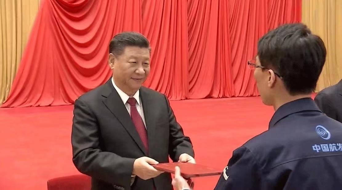 △2020年11月24日,在全國勞動模范和先進(jìn)工作者表彰大會上,習(xí)近平總書記向全國勞動模范和先進(jìn)工作者代表頒發(fā)榮譽證書。