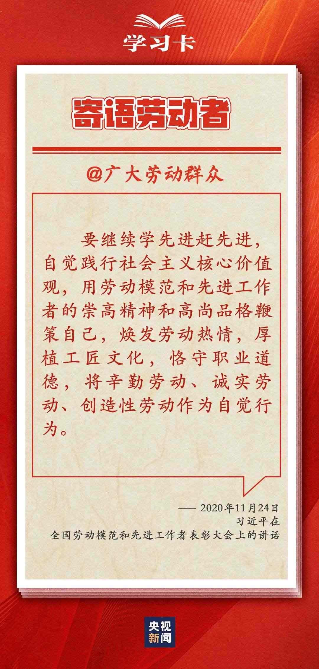 “社會(huì)主義是干出來(lái)的,新時(shí)代是奮斗出來(lái)的。”多年來(lái),習(xí)近平總書(shū)記一直情系全國(guó)廣大勞動(dòng)者,多次強(qiáng)調(diào)無(wú)論時(shí)代條件如何變化,我們始終都要崇尚勞動(dòng)、尊重勞動(dòng)者。