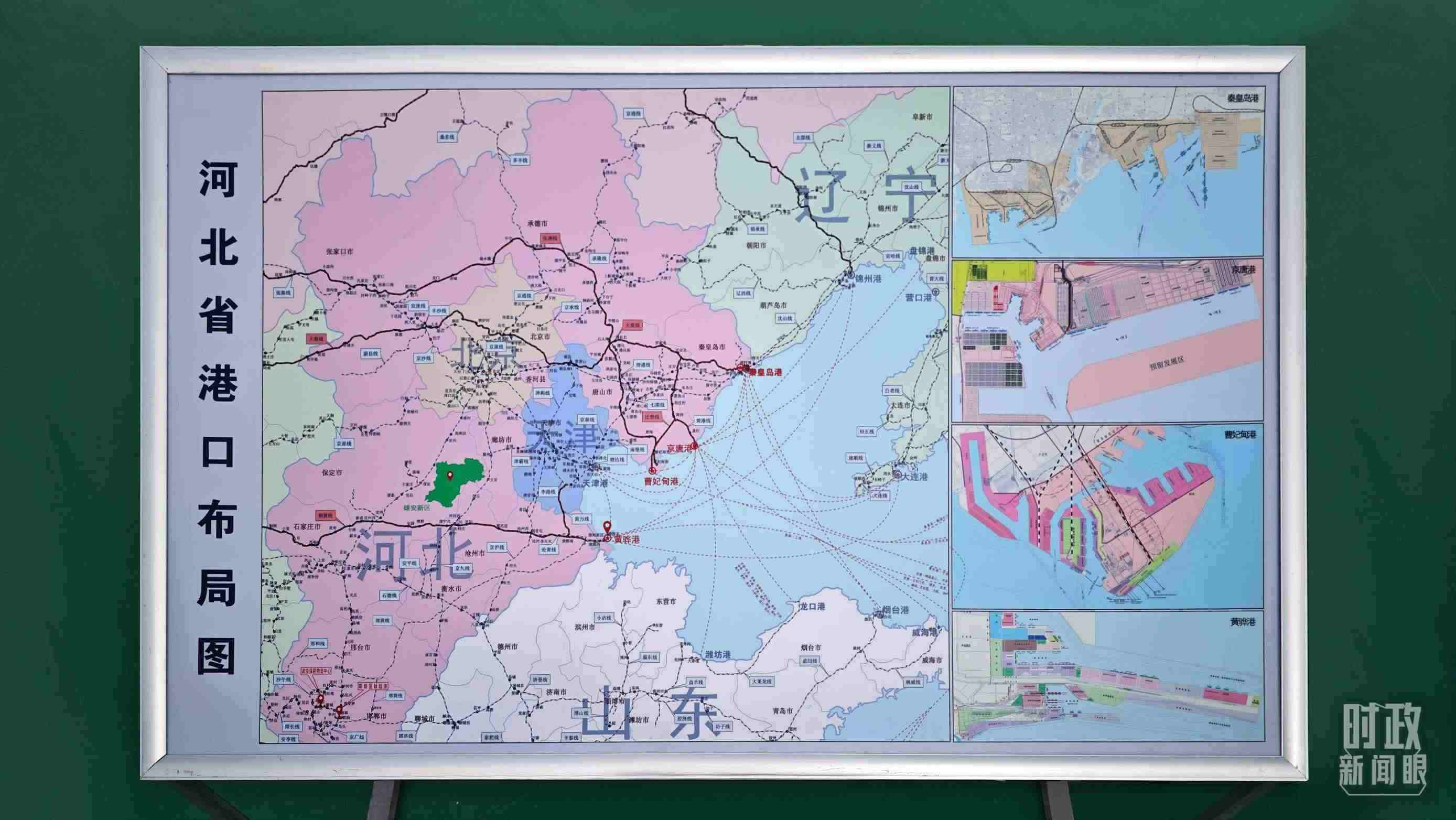 △河北省港口布局圖展示。(總臺(tái)央視記者彭漢明拍攝)