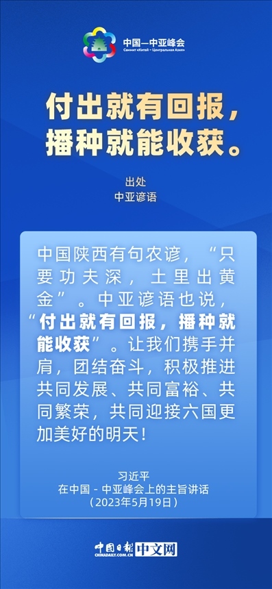 5月19日,國(guó)家主席習(xí)近平在中國(guó)—中亞峰會(huì)上發(fā)表主旨講話。在講話中,他引用這些古詩(shī)諺語(yǔ),“典”亮中國(guó)中亞合作。