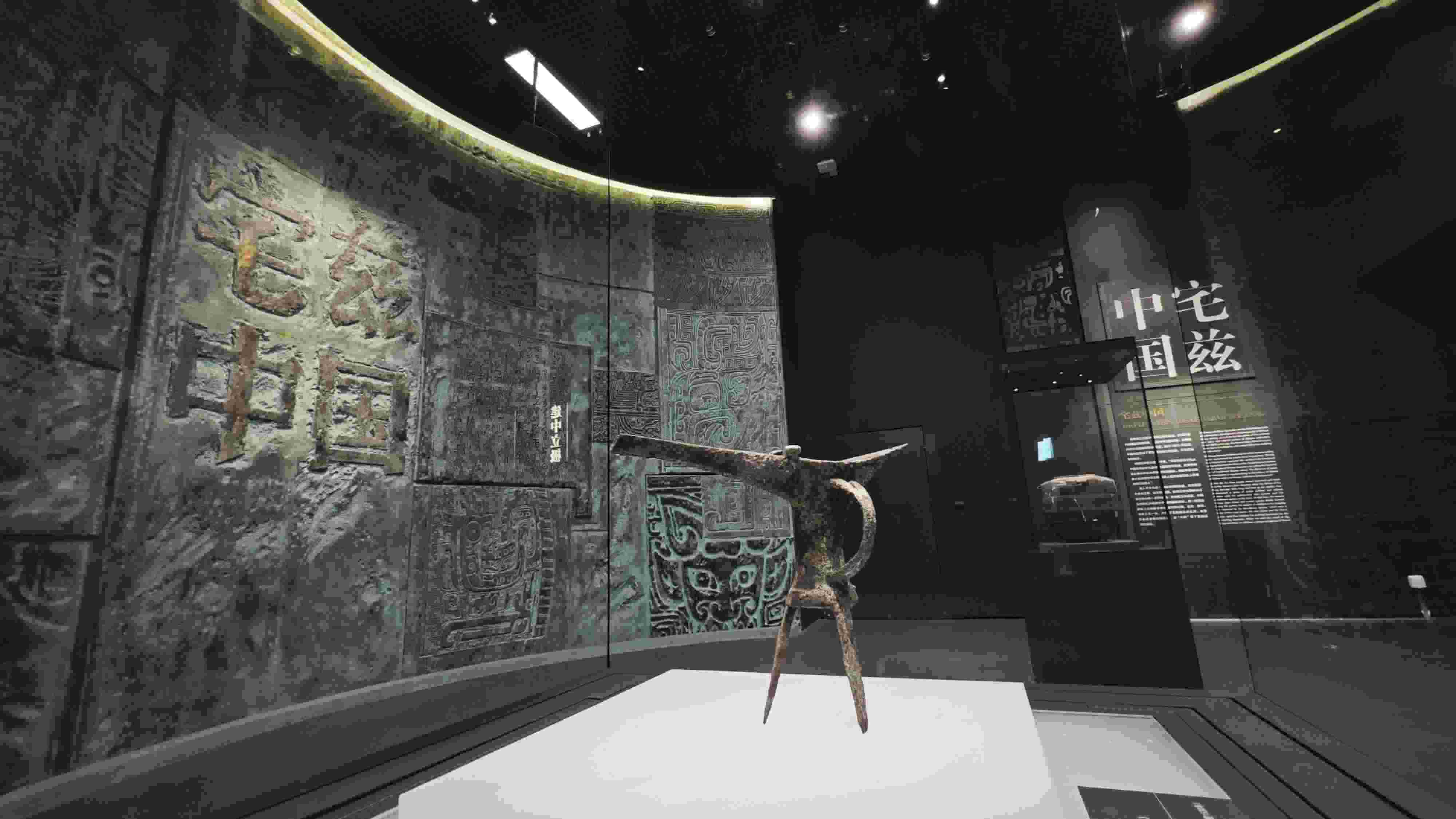展廳內(nèi),一件造型渾厚、工藝精美的西周早期青銅器——“何尊”熠熠生輝。何尊1963年出土于陜西寶雞,內(nèi)底刻有銘文“宅茲中國”,是目前發(fā)現(xiàn)“中國”二字最早的實物記錄。2020年,習近平總書記在陜西考察時說,“中國”二字最早見于在陜西出土的青銅器何尊。
