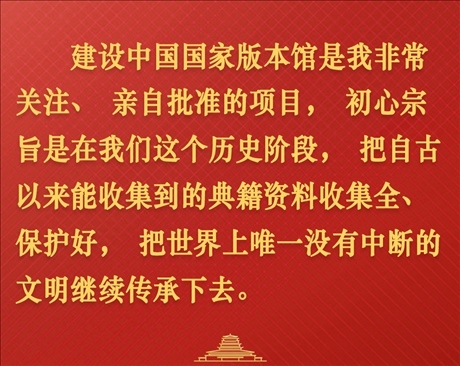 習(xí)近平強調(diào),建設(shè)中國國家版本館,是文明大國建設(shè)的基礎(chǔ)工程,是功在當(dāng)代、利在千秋的標(biāo)志性文化工程。