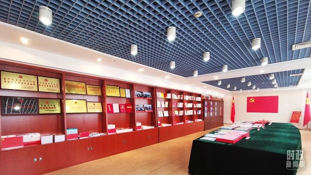 △內(nèi)蒙古自治區(qū)自然資源廳黨員活動室。2019年7月,習近平總書記曾在這里調(diào)研指導自然資源廳開展“不忘初心、牢記使命”主題教育。(總臺央視記者張曉鵬拍攝)